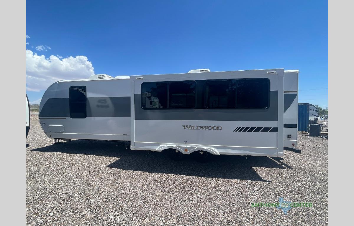 Enjoy years and years of memories with any one of these Forest River Wildwood travel trailers! They are built with a Dicor PVC roof membrane, a powder coated I-beam frame, and an aerodynamic front radius profile for an easier tow. The triple seal slide out system prevents water from seeping inside and keeps it outside where it belongs. The Best In Class Value Package includes upgraded designer furniture, seamless countertops with no T-mold, and two zone residential soundbars with FM, Bluetooth, HDMI and USB. You will also appreciate the heated and enclosed Accessi-Belly with removable underbelly panels, the power tongue jack with an LED light, and the designated CPAP storage. Some new upgraded features include: an upgraded slide-out fascia, a Versa-Tilt bed, an upgraded shower head, and a 60K BTU tankless water heater, and so much more!
