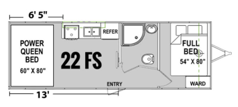 This Genesis Supreme 22 FS travel trailer toy hauler allows you to haul your favorite toys, make meals, get cleaned up, and sleep in your own private bedroom. Imagine your toys securely parked inside the cargo area that is 6'5" on up to 13' while moving down the road. Once you arrive to your destination, unload and start playing. When you are ready to relax, you can sit on the dual sofa beds while eating meals at the table, or sleep on the full bed or optional power queen bed. You will find plenty of storage for your gear, plus so much more!
