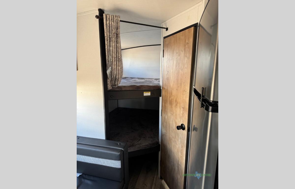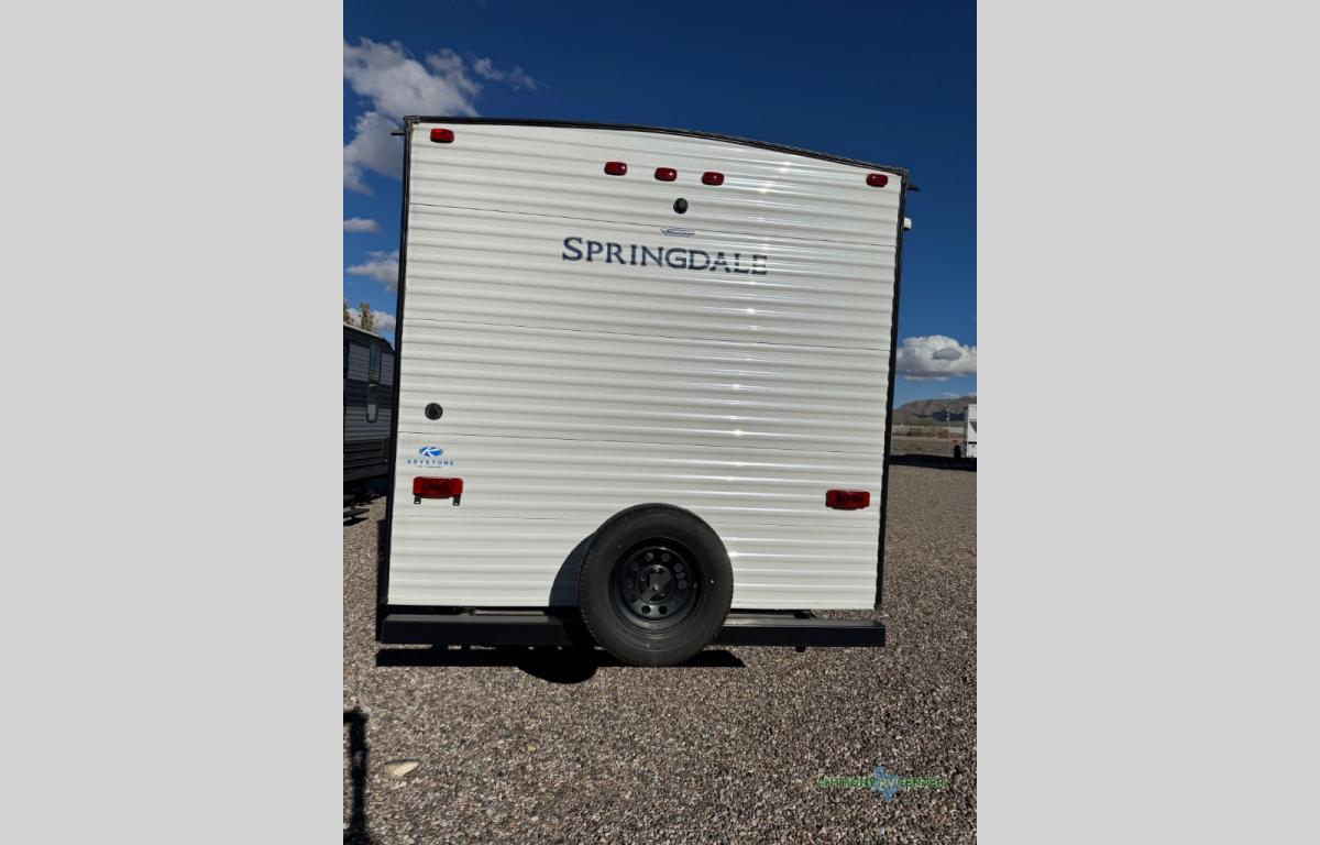 You are sure to love this Keystone Springdale travel trailer from the front private bedroom to the many different storage spaces for all of your camping needs! This trailer is fabulous for a larger group because it has a set of double-size bunks which will provide compact yet accommodating sleeping arrangements for your kids or friends. There is also a convenient full bathroom located next to the bunks which is super convenient, and allows everyone to get cleaned up before bedtime. You can enjoy your delicious meals at the booth dinette or even while relaxing on the sofa, and both of these can transform into extra sleeping spaces whenever needed.