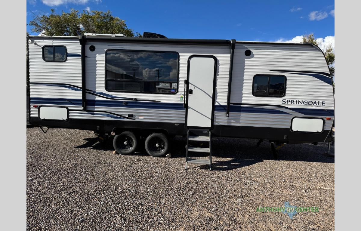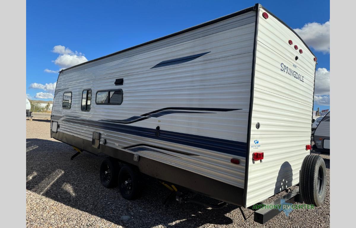 With any Keystone Springdale travel trailer, you will have a friction hinge entry door with sturdy LCI SolidStep steps, a pass-through storage compartment for your outdoor gear, and reliable Dexter E-Z Lube axles to maneuver your Springdale down the road and into the campsites. Some of the Keystone Exclusives provide 12V color-coded wiring with easy-to-trace circuits which is better than conventional RV wiring allowing a faster diagnosis for quicker repairs, and the streamlined heat distribution that uses in-floor heat vents for more efficiency for uninterrupted air flow. Also included, the Blade high performance air flow system that delivers 30% more air flow. The interior gives you pressed kitchen countertops, pleated night shades, and designer upholstered window valances for easy care and style, and more depending on the Springdale you choose!