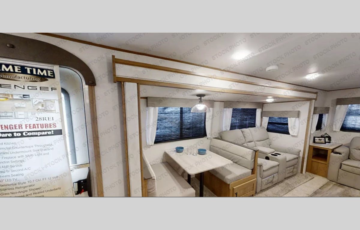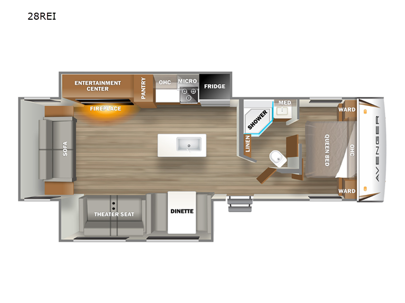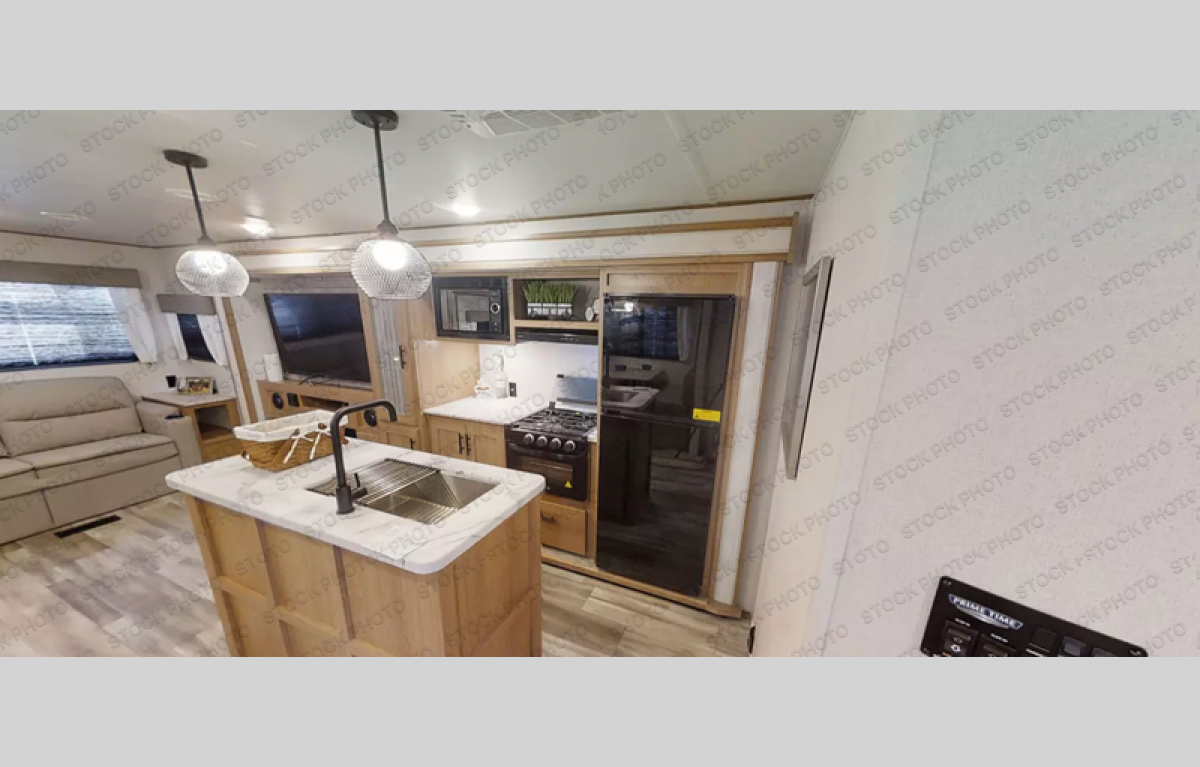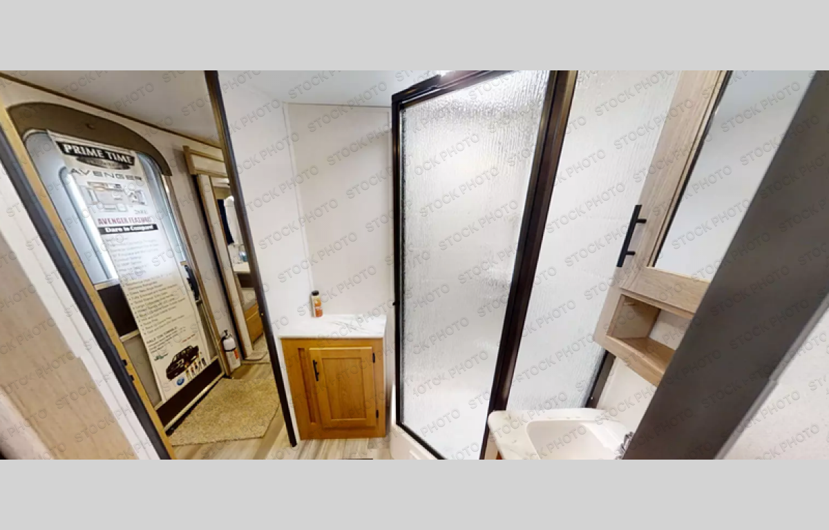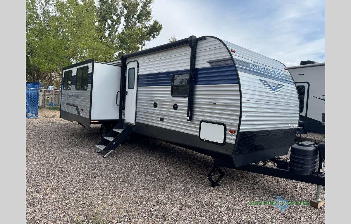 With any Avenger travel trailer by Prime Time, the exterior includes an aerodynamic radius front profile, a diamond plate front rock guard for protection on the road, and four stabilizer jacks to keep your unit secure. There is an aluminum exterior skin, a walk-on roof with decking, and an Extreme Weather package plus an enclosed underbelly so you can camp all year long. The interior offers a 13,500 BTU air conditioner for the perfect climate inside, in-floor ducted heat, a systems monitor panel, and a Bluetooth entertainment system to ensure you'll never go bored. Each model also includes designer window treatments, seamless Carefree Congoleum flooring, kitchen backsplash, and many more at-home comforts.